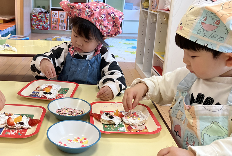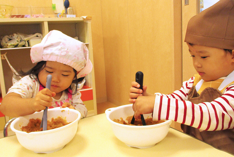 クッキングを通して、自分で作る過程を体験したり見たりしながら、食べる喜びや楽しさをみんなで共有することを大切にしています。