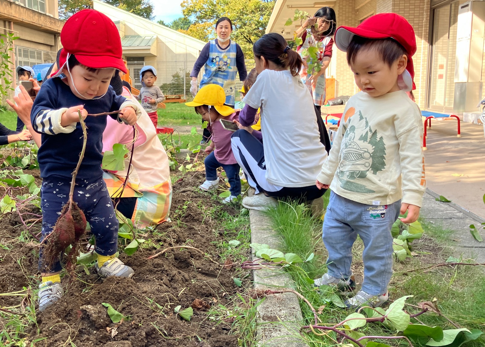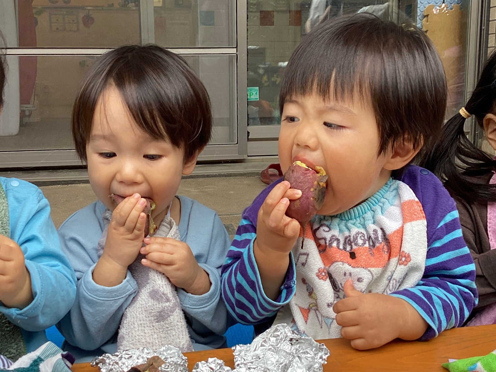 (園庭で収穫したさつまいもを使って焼き芋体験)